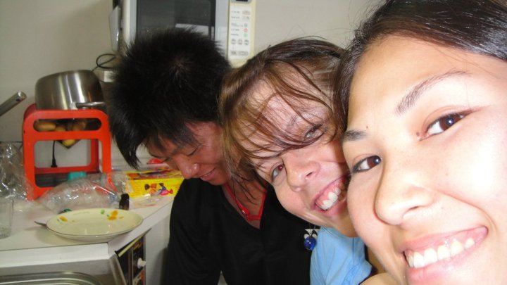 Yesterday, there was a discussion about my name. It's apparently a pretty difficult name, though once they figure it out, there's no problem. So, they were working on coming up with new nicknames (mostly these were guys having this talk), in the typical guy fashion. So, here is my name in Katakana: ジャニーン (Janine) They came up with: ジャニコ (Janiko, since a lot of girls names here end in -ko, but I think there's another reason why they say this, and I'm not sure why...), ジャニンジャ (Janinja- or Ja-ninja), ジャニーさん (Jani-san, apparently a famous producer)... and drum roll please... ジャケルマイクソン (Jakeru-Maikuson)... say it fast, you'll get it... Michael Jackson, just a bit mixed up. That got a big laugh.